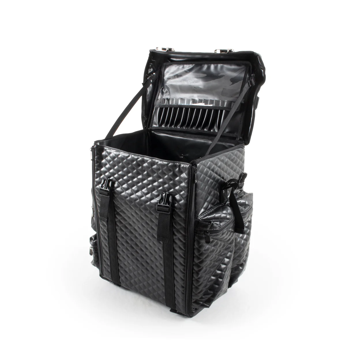 Quand vous l'ouvrez pour la première fois par le dessus (voyez-y là une ressemblance avec le cartable scolaire), vous tombez sur un compartiment suffisamment profond pour y faire tenir du matériel électrique, comme votre séchoir Ultimate Pro ou votre Steampod 3.0 ! Le petit bonus ? Une valise vendue avec deux trousses transparentes pour votre petit matériel, et une sangle de portage.
